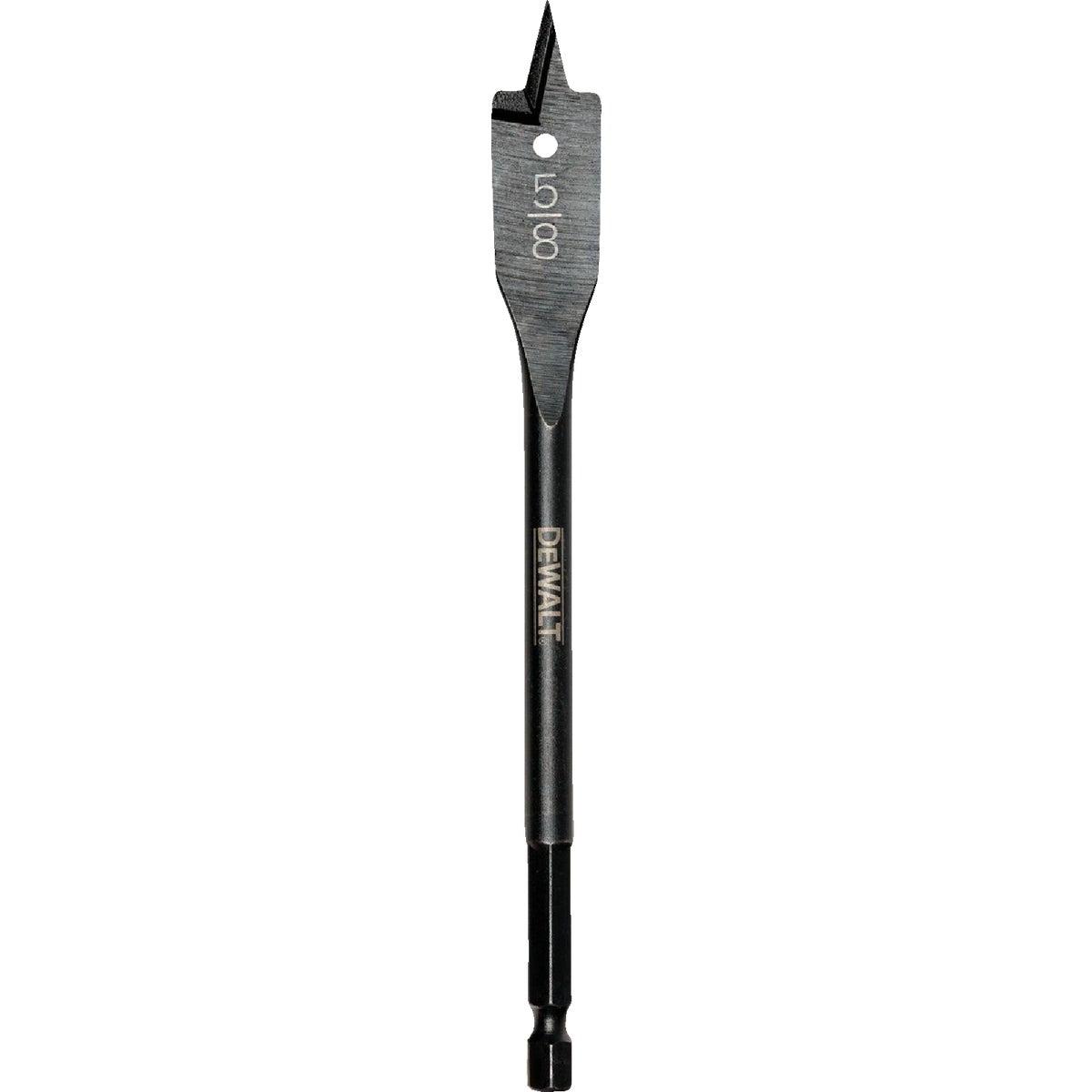 Featuring a heavy-duty, full-length, heat-treated shank for protection against bends and breaks, DeWALT spade bits are equipped with high-performance cutting spurs for optimum hole finish. An extreme speed channel provides fast chip removal and a 1/4 in ball groove shank offer quick-change applications. A 1/4 in hex shank helps to prevent slippage and a hang hole enables easy storage and wire pulling.