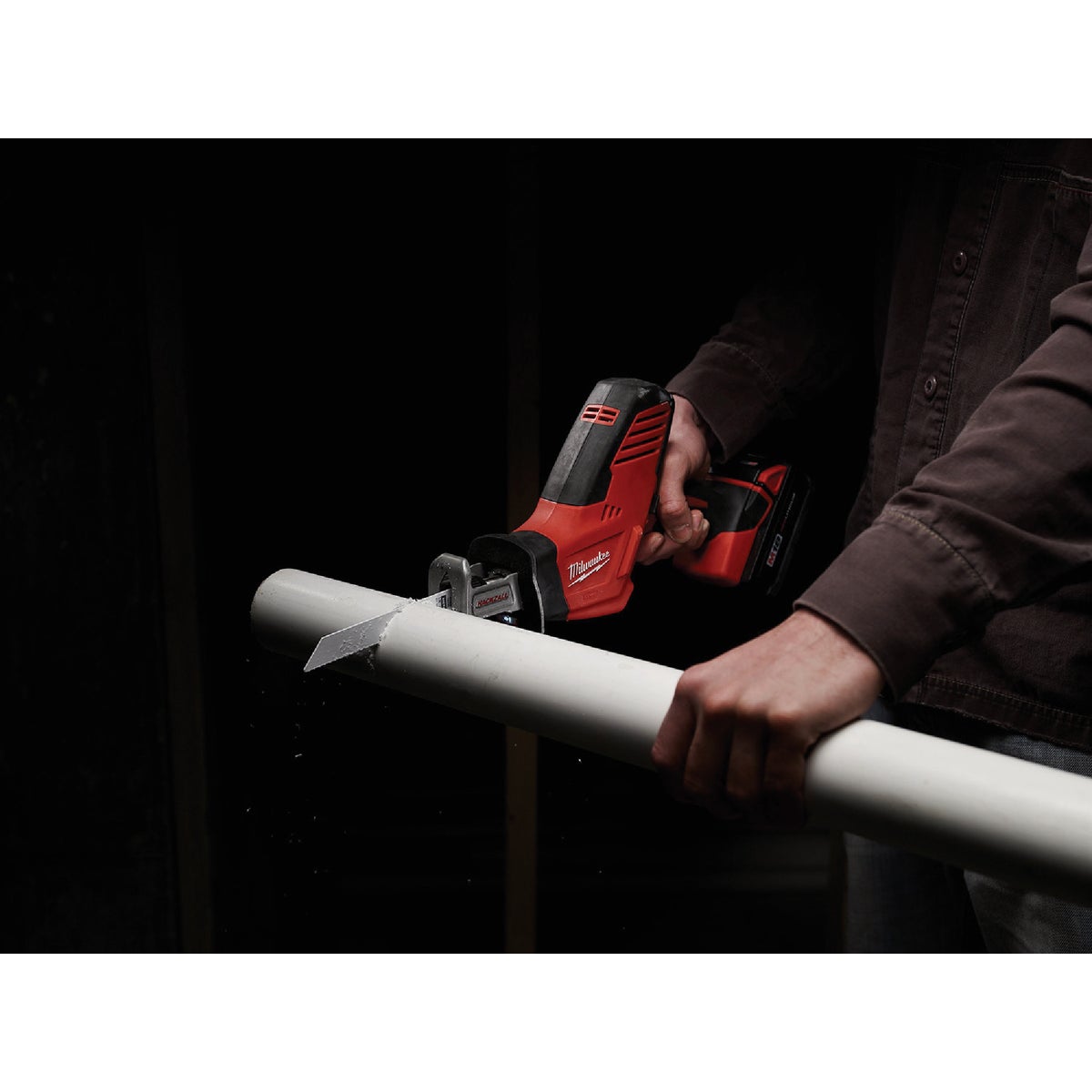 The Milwaukee HACKZALL M18 cordless lithium-ion one-handed reciprocating saw (2625-20) features a patent pending dual gear anti-vibration system for unmatched comfort and control as well as light weight design for superior control and versatility. The powerful motor delivers 0-3,000 strokes per minute and a 3/4 In. stroke length allows for fast cutting through a wide range of material such as wood, metal and PVC. The dual gear anti-vibration system increases control and accuracy. The 2625-20 also features a QUIK-LOK blade clamp which offers fast and easy blade changes. Tool Only - battery and charger not included.